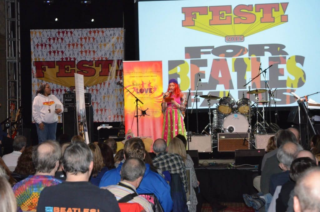 At the first Fest, the Beatles contributed instruments that were raffled off. I didn’t win—although I did tap on the tabla from “Within You Without You” that another attendee won. Years and years of checking my wrist band numbers as Mark called out winners, and all I’ve won is a Yellow Submarine DVD poster.